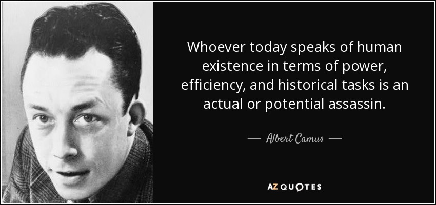Whoever today speaks of human existence in terms of power, efficiency, and historical tasks is an actual or potential assassin.