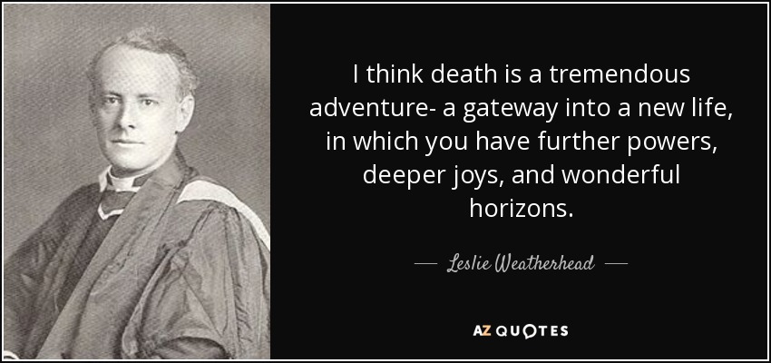 I think death is a tremendous adventure- a gateway into a new life, in which you have further powers, deeper joys, and wonderful horizons.