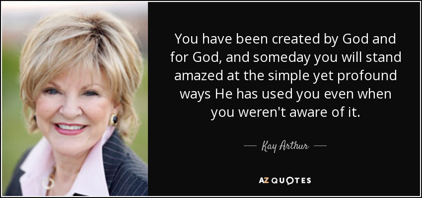 You have been created by God and for God, and someday you will stand amazed at the simple yet profound ways He has used you even when you weren't aware of it.