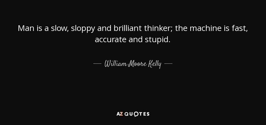 Man is a slow, sloppy and brilliant thinker; the machine is fast, accurate and stupid.