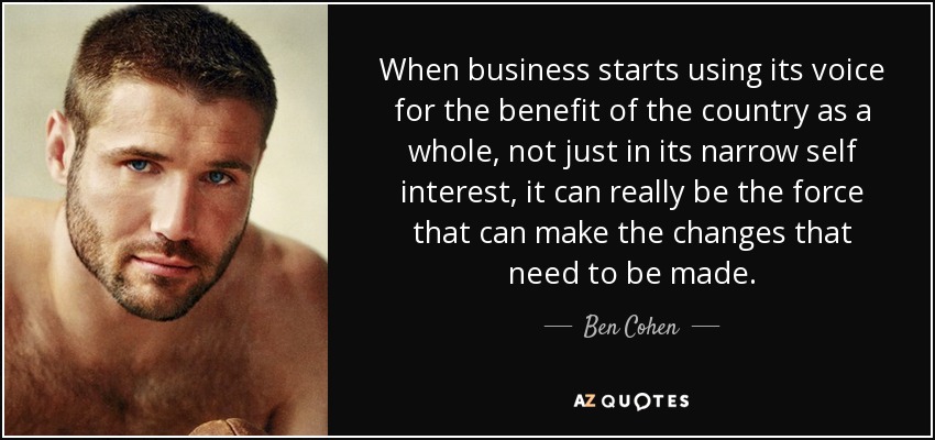 When business starts using its voice for the benefit of the country as a whole, not just in its narrow self interest, it can really be the force that can make the changes that need to be made.