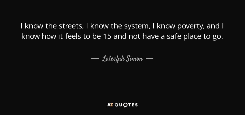 I know the streets, I know the system, I know poverty, and I know how it feels to be 15 and not have a safe place to go.