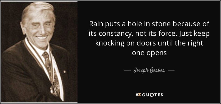 Rain puts a hole in stone because of its constancy, not its force. Just keep knocking on doors until the right one opens