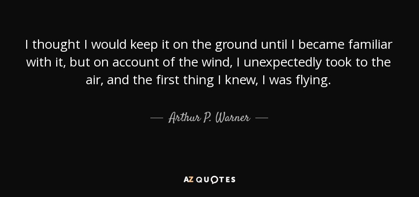 I thought I would keep it on the ground until I became familiar with it, but on account of the wind, I unexpectedly took to the air, and the first thing I knew, I was flying.