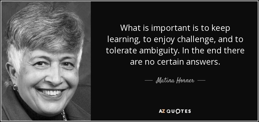 What is important is to keep learning, to enjoy challenge, and to tolerate ambiguity. In the end there are no certain answers.