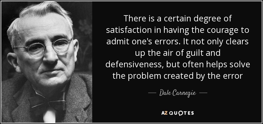 There is a certain degree of satisfaction in having the courage to admit one's errors. It not only clears up the air of guilt and defensiveness, but often helps solve the problem created by the error