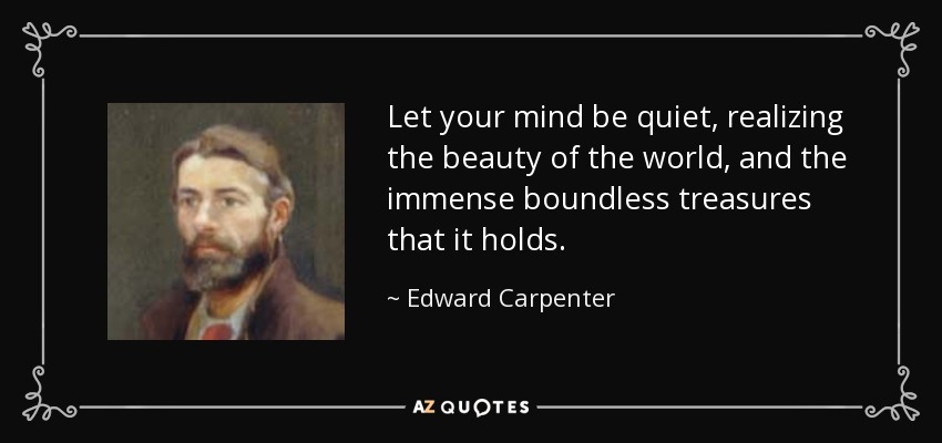 Let your mind be quiet, realizing the beauty of the world, and the immense boundless treasures that it holds.