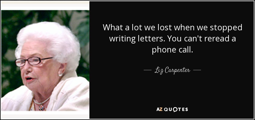 What a lot we lost when we stopped writing letters. You can't reread a phone call.