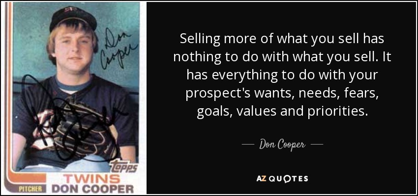Selling more of what you sell has nothing to do with what you sell. It has everything to do with your prospect's wants, needs, fears, goals, values and priorities.