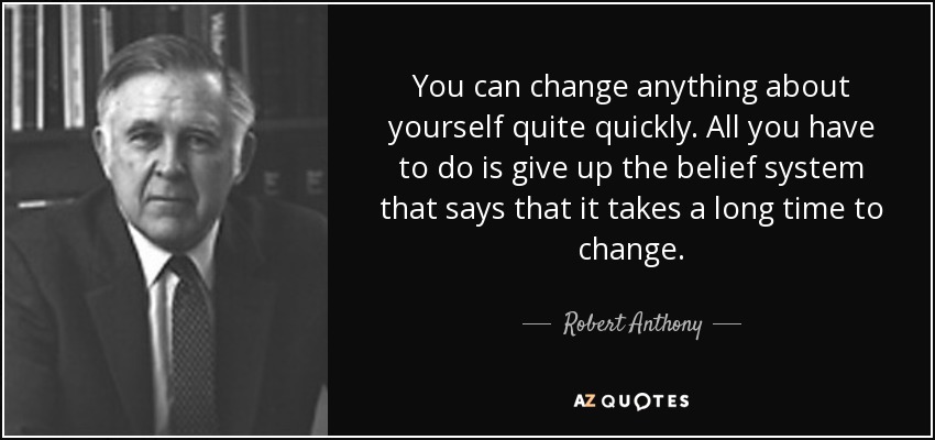 You can change anything about yourself quite quickly. All you have to do is give up the belief system that says that it takes a long time to change.