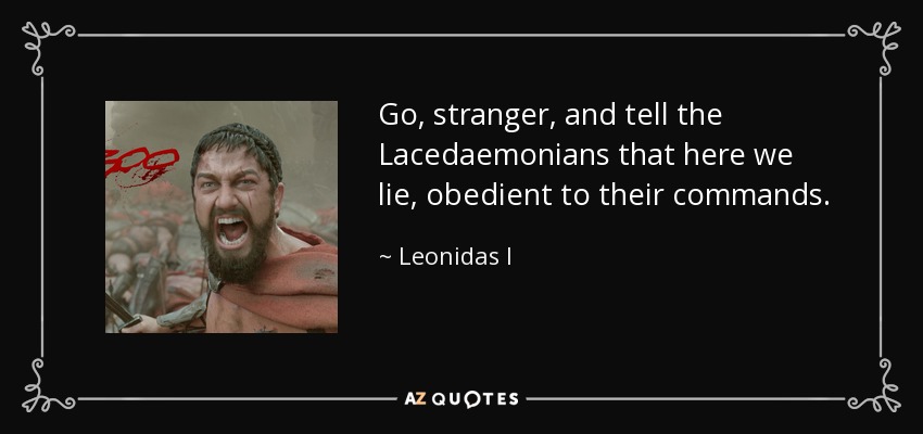 Go, stranger, and tell the Lacedaemonians that here we lie, obedient to their commands.