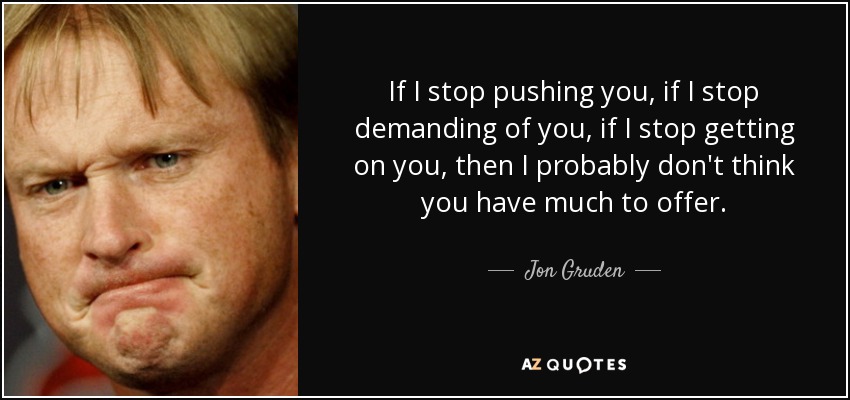 If I stop pushing you, if I stop demanding of you, if I stop getting on you, then I probably don't think you have much to offer.