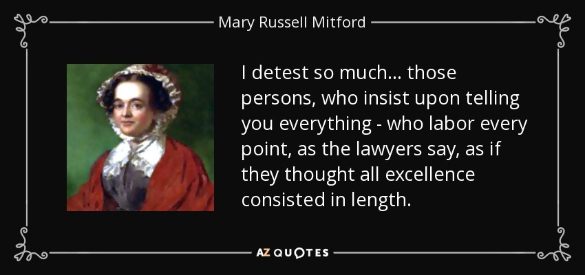 I detest so much ... those persons, who insist upon telling you everything - who labor every point, as the lawyers say, as if they thought all excellence consisted in length.