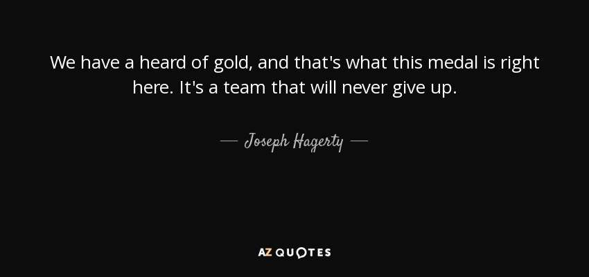 We have a heard of gold, and that's what this medal is right here. It's a team that will never give up.