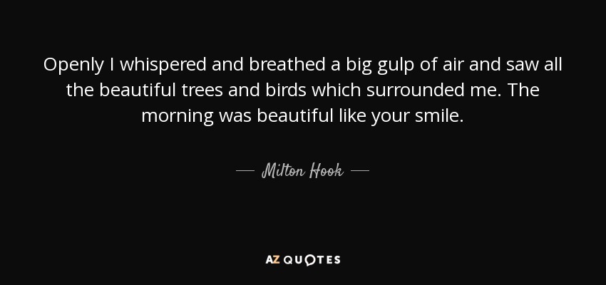 Openly I whispered and breathed a big gulp of air and saw all the beautiful trees and birds which surrounded me. The morning was beautiful like your smile.