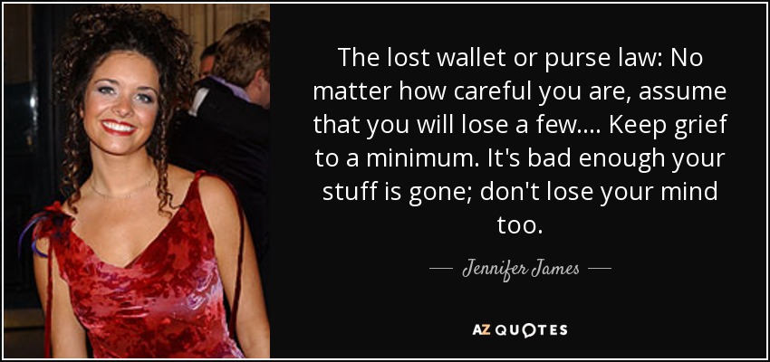 The lost wallet or purse law: No matter how careful you are, assume that you will lose a few. ... Keep grief to a minimum. It's bad enough your stuff is gone; don't lose your mind too.