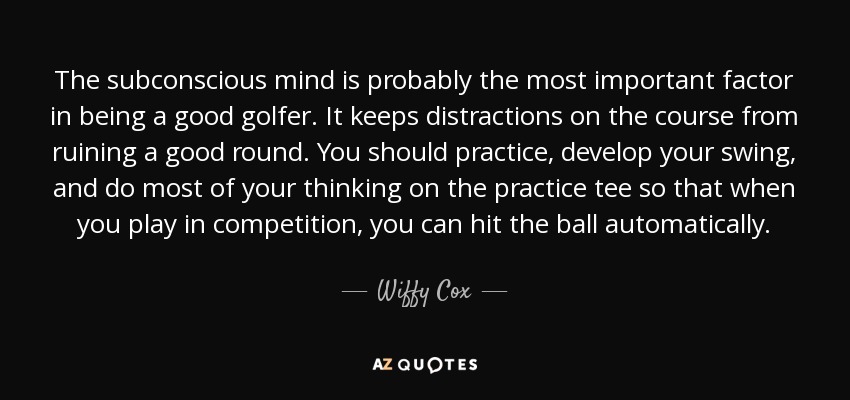 The subconscious mind is probably the most important factor in being a good golfer. It keeps distractions on the course from ruining a good round. You should practice, develop your swing, and do most of your thinking on the practice tee so that when you play in competition, you can hit the ball automatically.