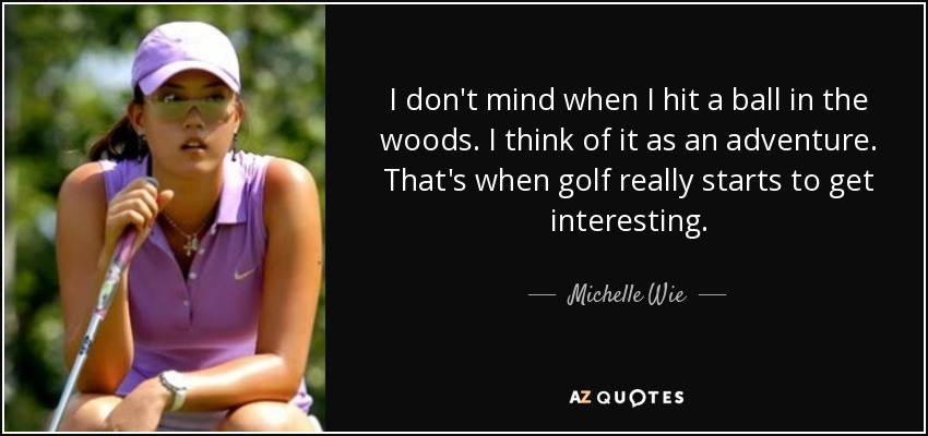 I don't mind when I hit a ball in the woods. I think of it as an adventure. That's when golf really starts to get interesting.
