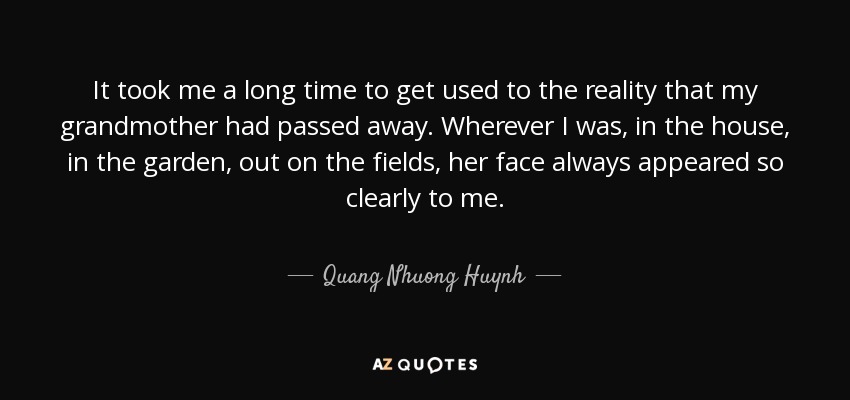 It took me a long time to get used to the reality that my grandmother had passed away. Wherever I was, in the house, in the garden, out on the fields, her face always appeared so clearly to me.
