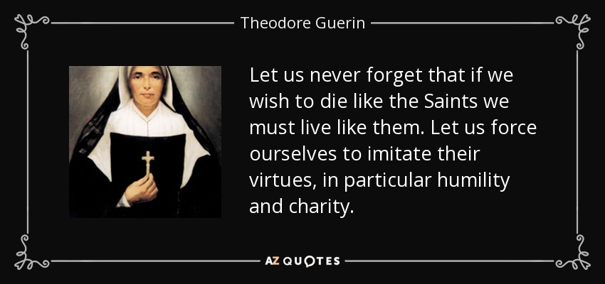 Let us never forget that if we wish to die like the Saints we must live like them. Let us force ourselves to imitate their virtues, in particular humility and charity.