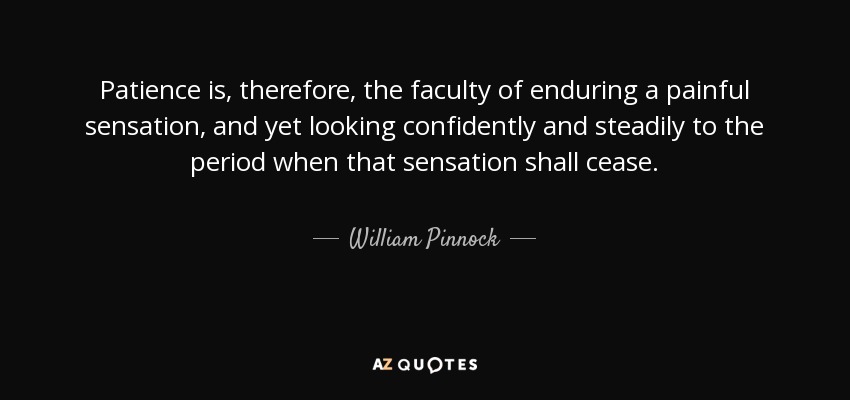 Patience is, therefore, the faculty of enduring a painful sensation, and yet looking confidently and steadily to the period when that sensation shall cease.