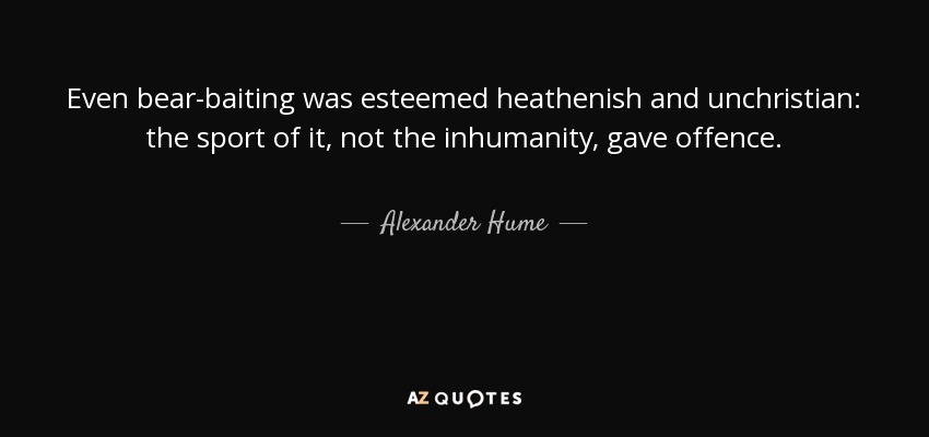 Even bear-baiting was esteemed heathenish and unchristian: the sport of it, not the inhumanity, gave offence.