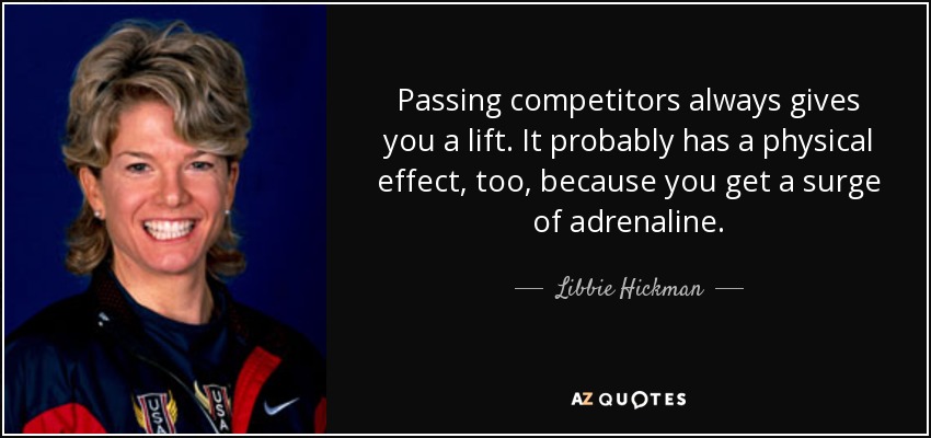 Passing competitors always gives you a lift. It probably has a physical effect, too, because you get a surge of adrenaline.