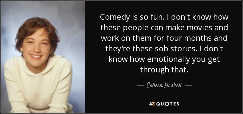 Comedy is so fun. I don't know how these people can make movies and work on them for four months and they're these sob stories. I don't know how emotionally you get through that.