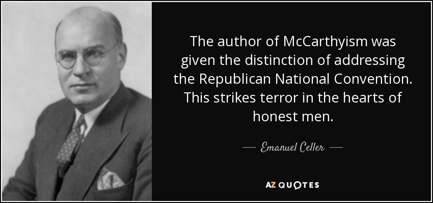 The author of McCarthyism was given the distinction of addressing the Republican National Convention. This strikes terror in the hearts of honest men.