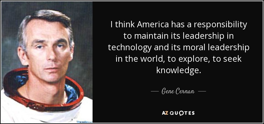 I think America has a responsibility to maintain its leadership in technology and its moral leadership in the world, to explore, to seek knowledge.