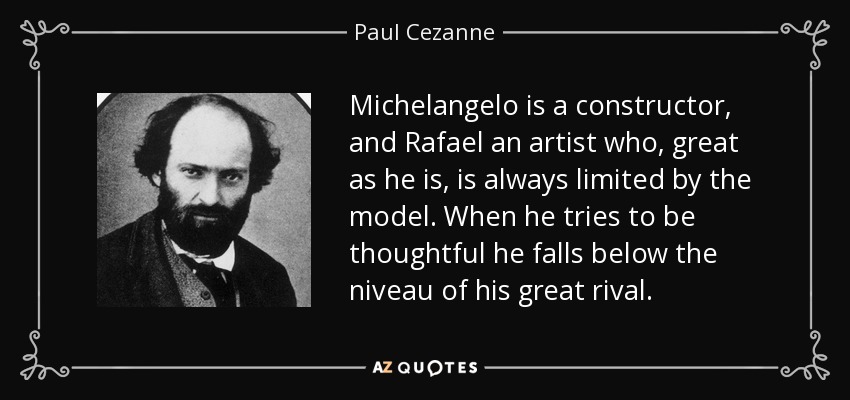 Michelangelo is a constructor, and Rafael an artist who, great as he is, is always limited by the model. When he tries to be thoughtful he falls below the niveau of his great rival.
