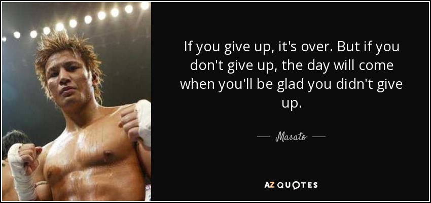 If you give up, it's over. But if you don't give up, the day will come when you'll be glad you didn't give up.