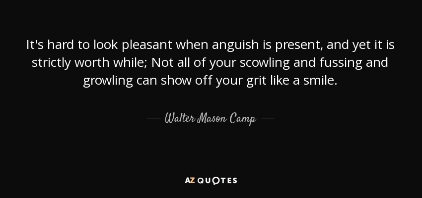 It's hard to look pleasant when anguish is present, and yet it is strictly worth while; Not all of your scowling and fussing and growling can show off your grit like a smile.