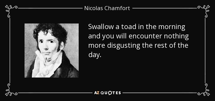 Swallow a toad in the morning and you will encounter nothing more disgusting the rest of the day.