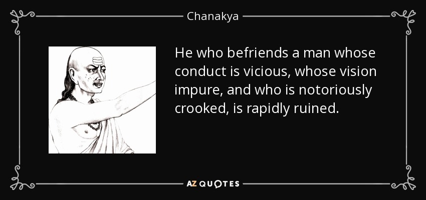 He who befriends a man whose conduct is vicious, whose vision impure, and who is notoriously crooked, is rapidly ruined.