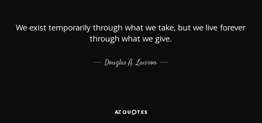 In a world filled with violence, hatred, and suspicion, giving is an expression of faith, trust, and concern.