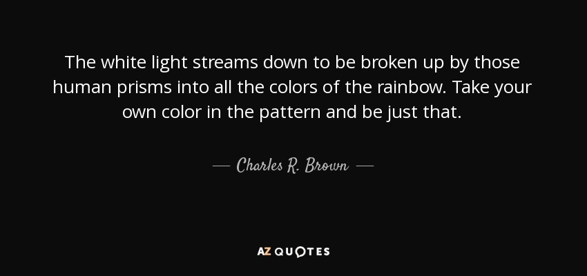 The white light streams down to be broken up by those human prisms into all the colors of the rainbow. Take your own color in the pattern and be just that.