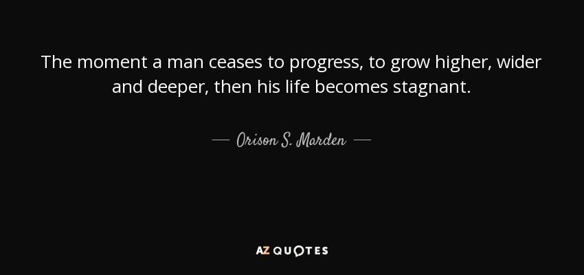 The moment a man ceases to progress, to grow higher, wider and deeper, then his life becomes stagnant.