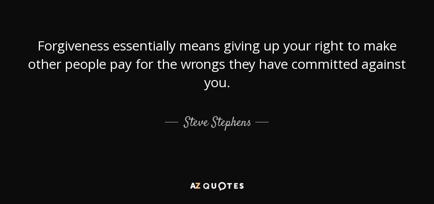 Forgiveness essentially means giving up your right to make other people pay for the wrongs they have committed against you.