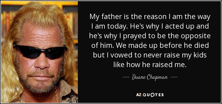 My father is the reason I am the way I am today. He's why I acted up and he's why I prayed to be the opposite of him. We made up before he died but I vowed to never raise my kids like how he raised me.