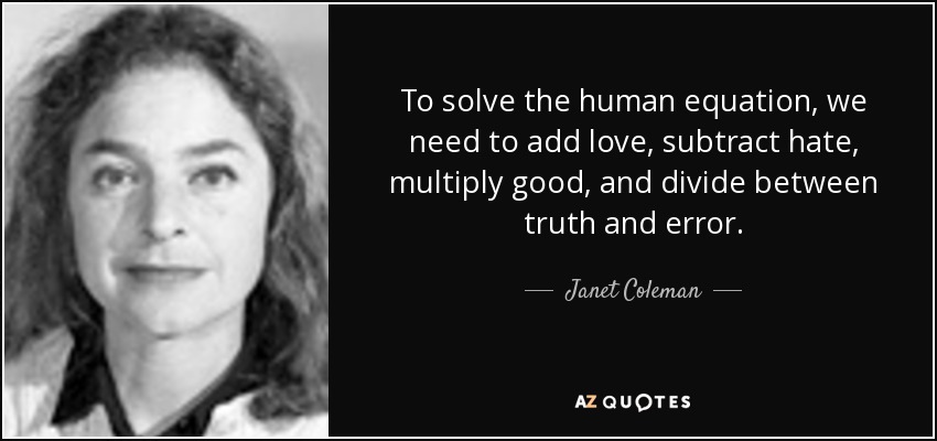 To solve the human equation, we need to add love, subtract hate, multiply good, and divide between truth and error.