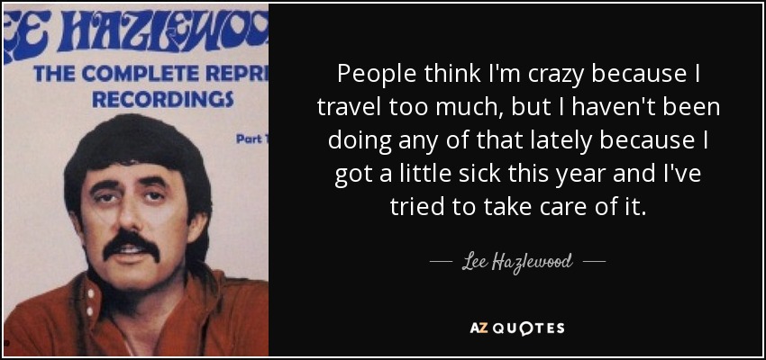 People think I'm crazy because I travel too much, but I haven't been doing any of that lately because I got a little sick this year and I've tried to take care of it.
