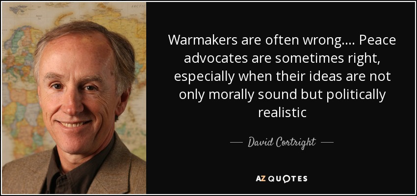Warmakers are often wrong. ... Peace advocates are sometimes right, especially when their ideas are not only morally sound but politically realistic