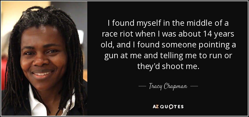 I found myself in the middle of a race riot when I was about 14 years old, and I found someone pointing a gun at me and telling me to run or they'd shoot me.