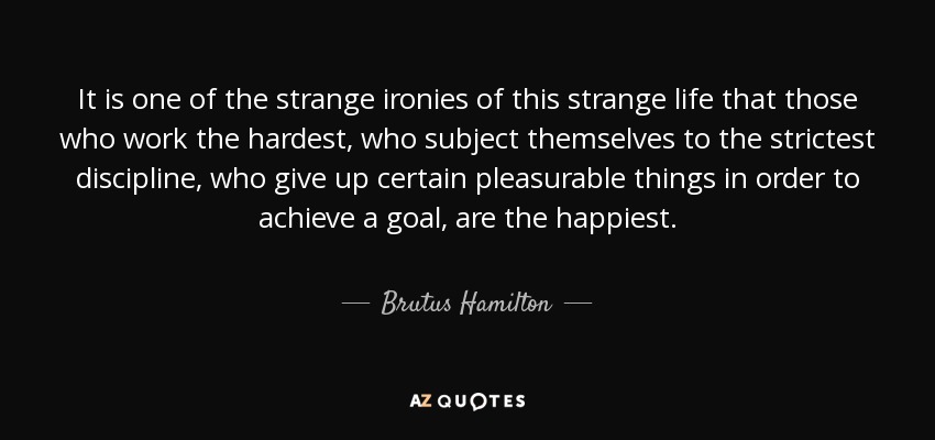 It is one of the strange ironies of this strange life that those who work the hardest, who subject themselves to the strictest discipline, who give up certain pleasurable things in order to achieve a goal, are the happiest.