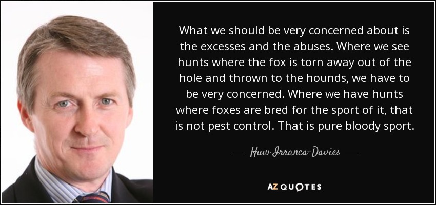 What we should be very concerned about is the excesses and the abuses. Where we see hunts where the fox is torn away out of the hole and thrown to the hounds, we have to be very concerned. Where we have hunts where foxes are bred for the sport of it, that is not pest control. That is pure bloody sport.