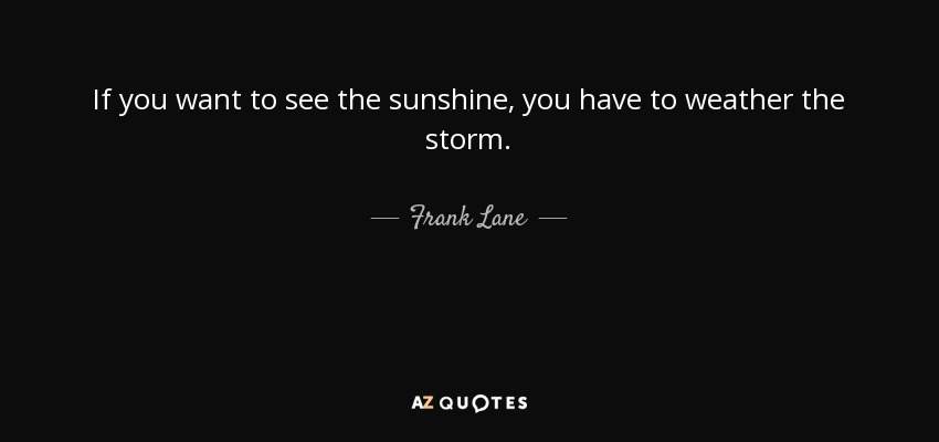 If you want to see the sunshine, you have to weather the storm.