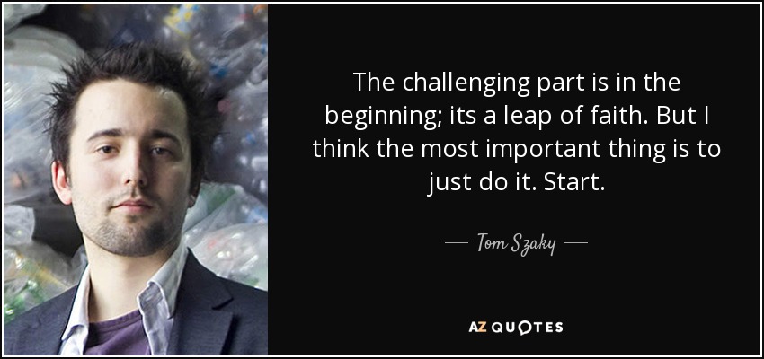 The challenging part is in the beginning; its a leap of faith. But I think the most important thing is to just do it. Start.