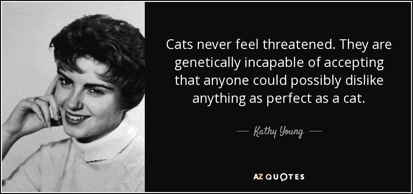 Cats never feel threatened. They are genetically incapable of accepting that anyone could possibly dislike anything as perfect as a cat.