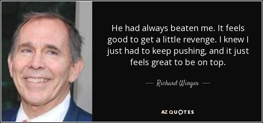 He had always beaten me. It feels good to get a little revenge. I knew I just had to keep pushing, and it just feels great to be on top.
